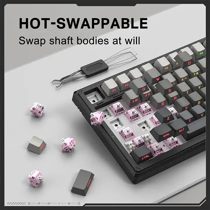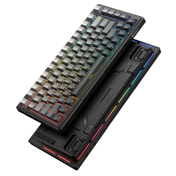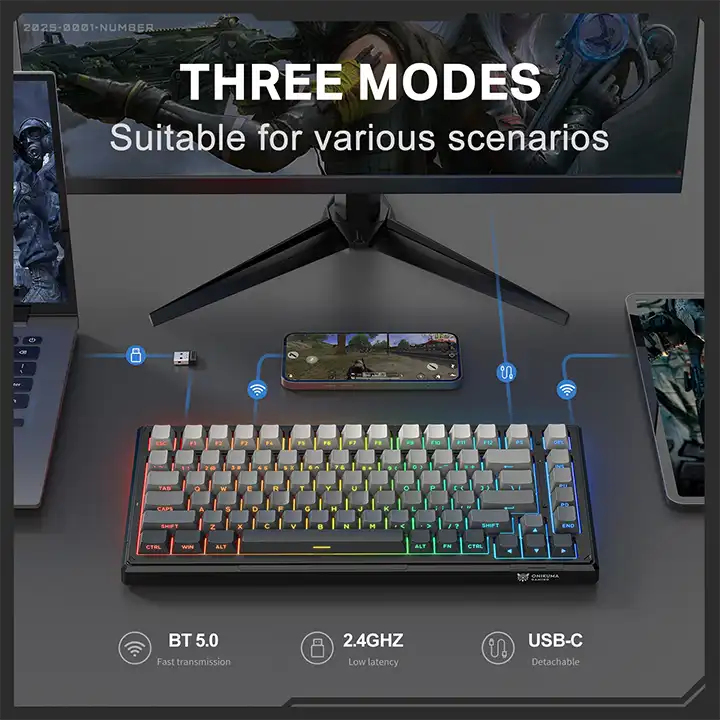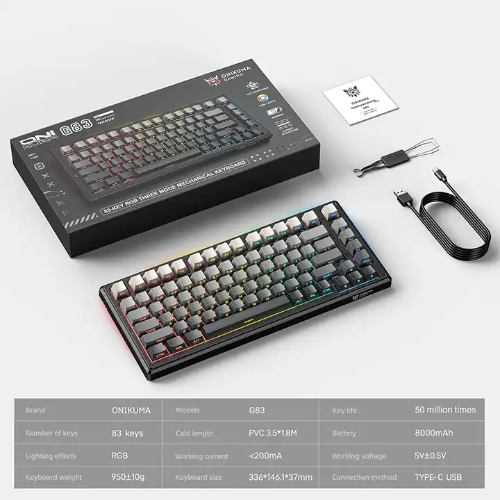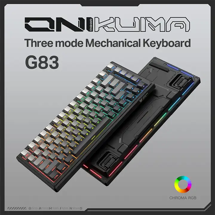 Acest model DomestiQ -Onikuma G83 este o tastatură mecanică performantă, creată pentru gamerii care vor libertate totală și reacție instantanee. Cu 3 moduri de conectare (Bluetooth, wireless 2.4G și USB-C), iluminare RGB vibrantă și o baterie puternică de 8000mAh, G83 devine companionul ideal pentru gaming de nivel înalt și productivitate avansată.